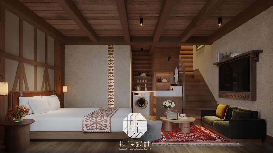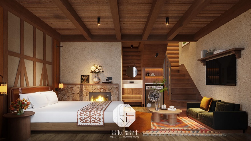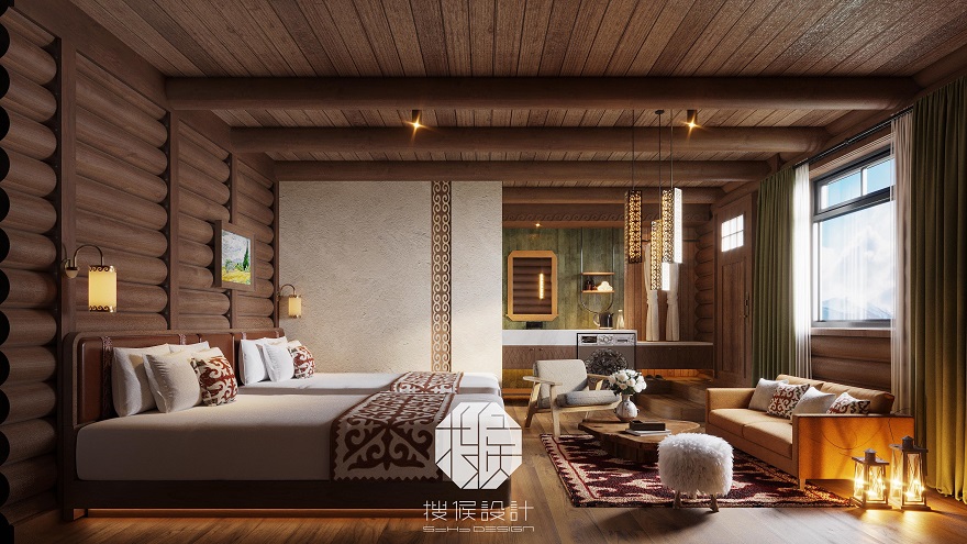 由三个院子组成,每个院子都包含两栋建筑,共计6栋木屋组成。四面环山,视野开阔。以当地的文化特色为主线将住宿、餐饮、体验类休闲项目串联成一个整体,希望打造一个功能完善、贴合当地文化特色与生活方式的度假胜地。